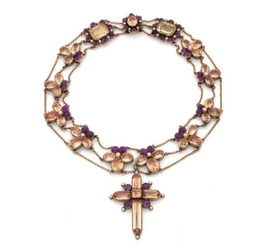 18th century emerald, ruby and diamond flower brooch, c.1760, designed as a trumpet shaped flower in bloom on a single stem with various smaller buds and flowerheads,