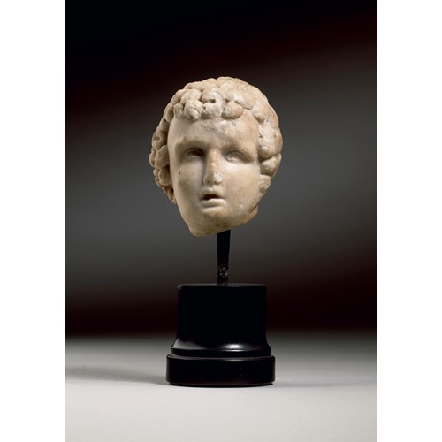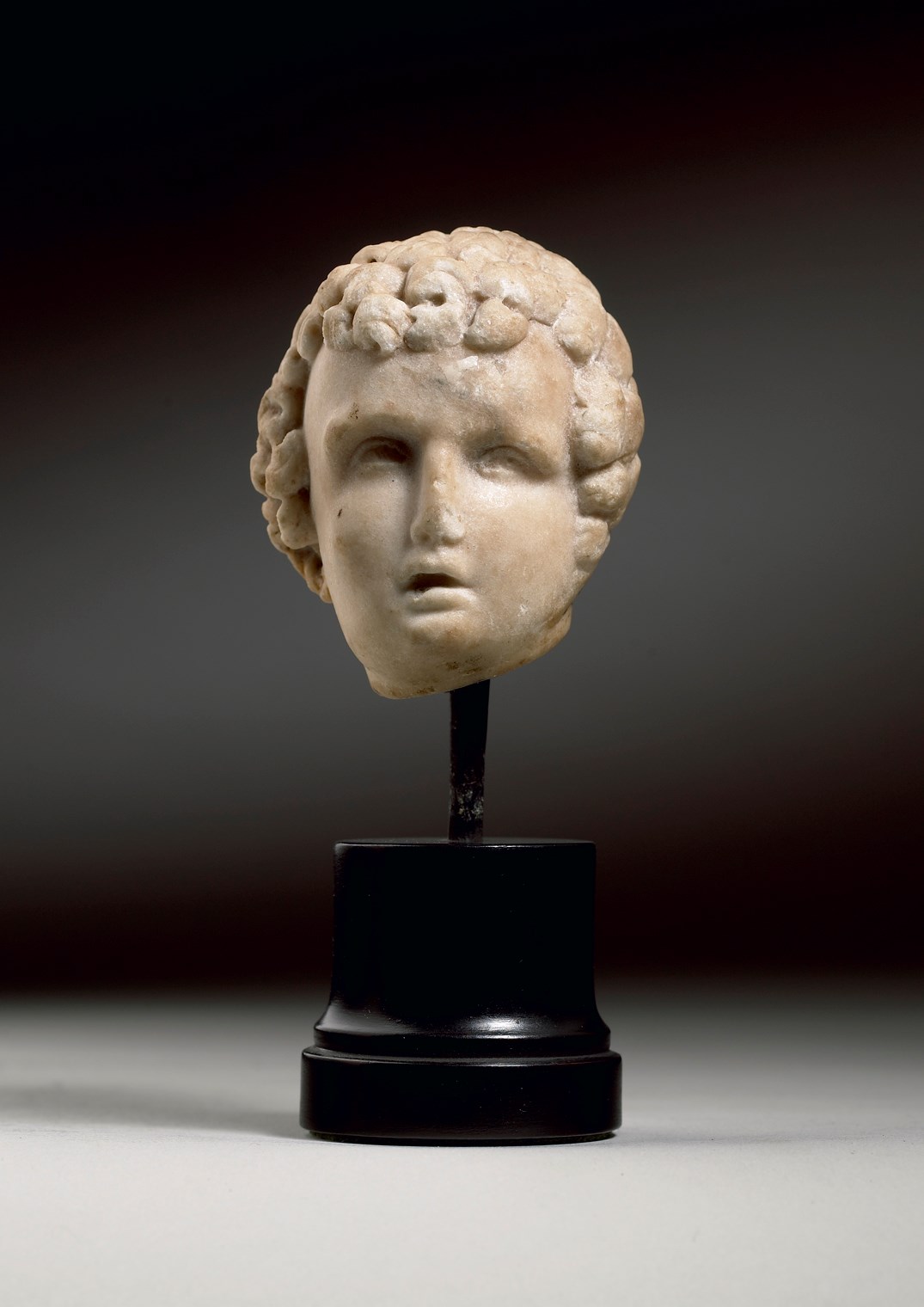 The physiognomy of Mercury’s face, with the wide open and clearly delineated eyes, oval shape, and delicately rendered curled locks of hair suggest a high Baroque date yet deriving inspiration from an earlier model.