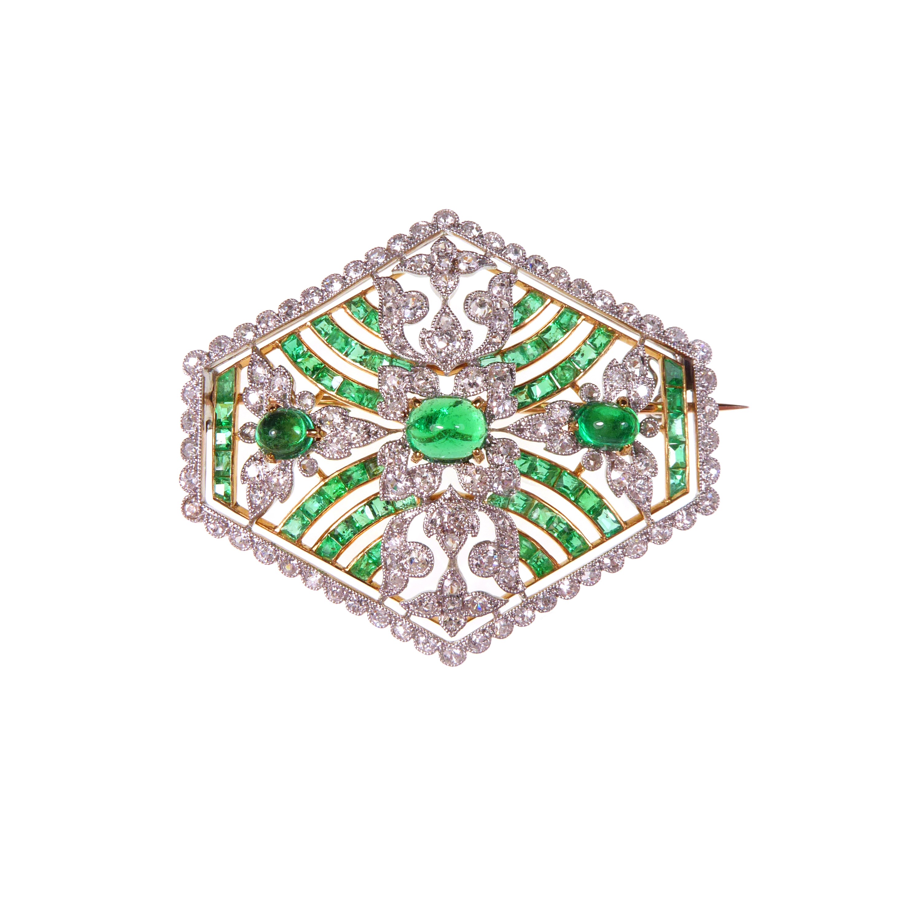 Early 20th century rectangular emerald and diamond cluster ring, c.1910, centred by a 3.59ct Colombian emerald of canted step-cut,