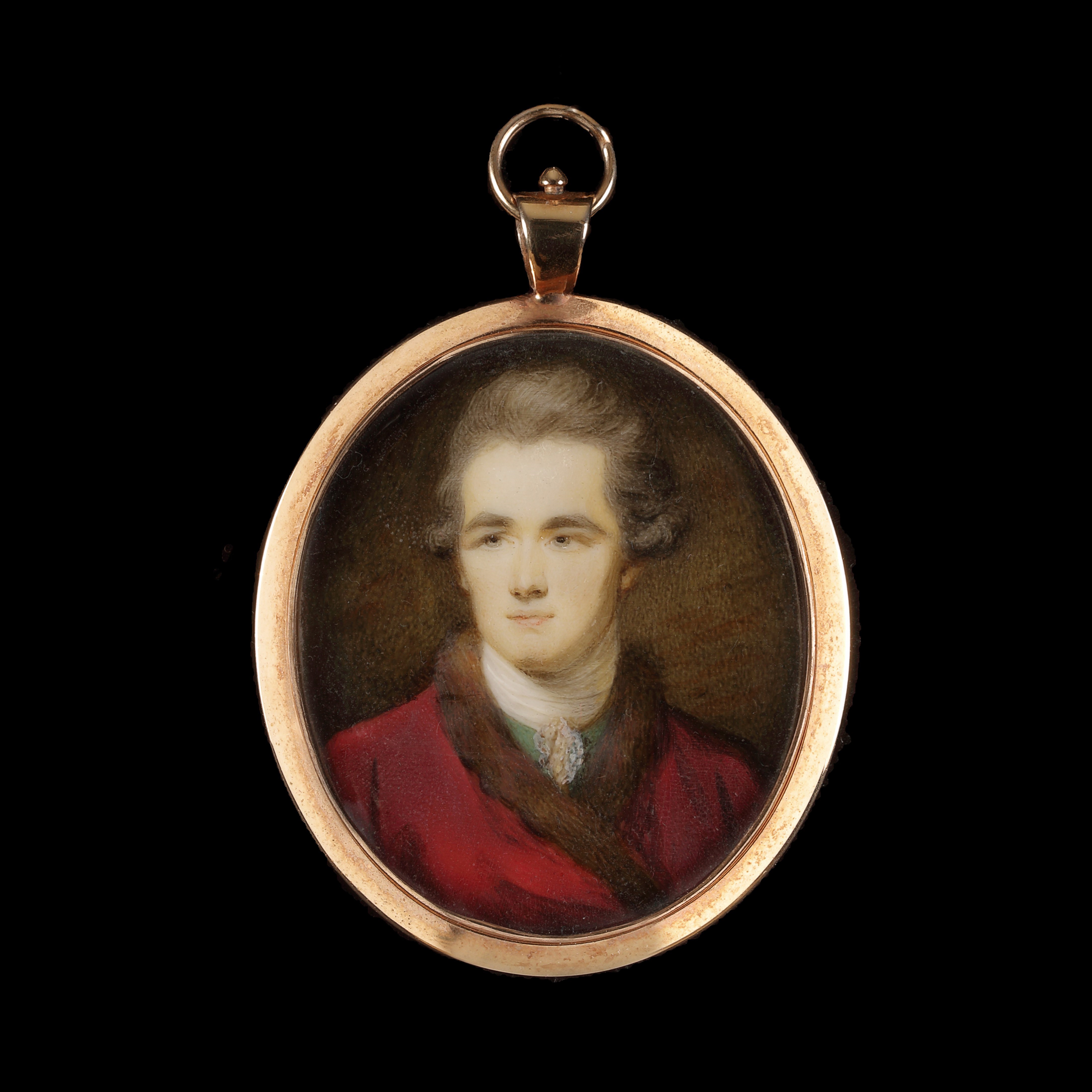 The size of this miniature suggests that if it were worn, it would be quite the statement on the part of the wearer (contemporary paintings do show women wearing miniatures of this size, however impractical we think that might have been). Although we have been unable to pinpoint an artist, the painter was clearly highly trained and influenced by miniaturists such as Antoine Vestier (1740-1824), who was also able to render such detail and texture in watercolour.
