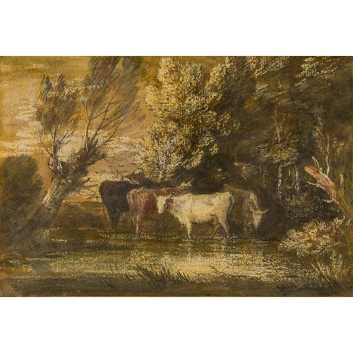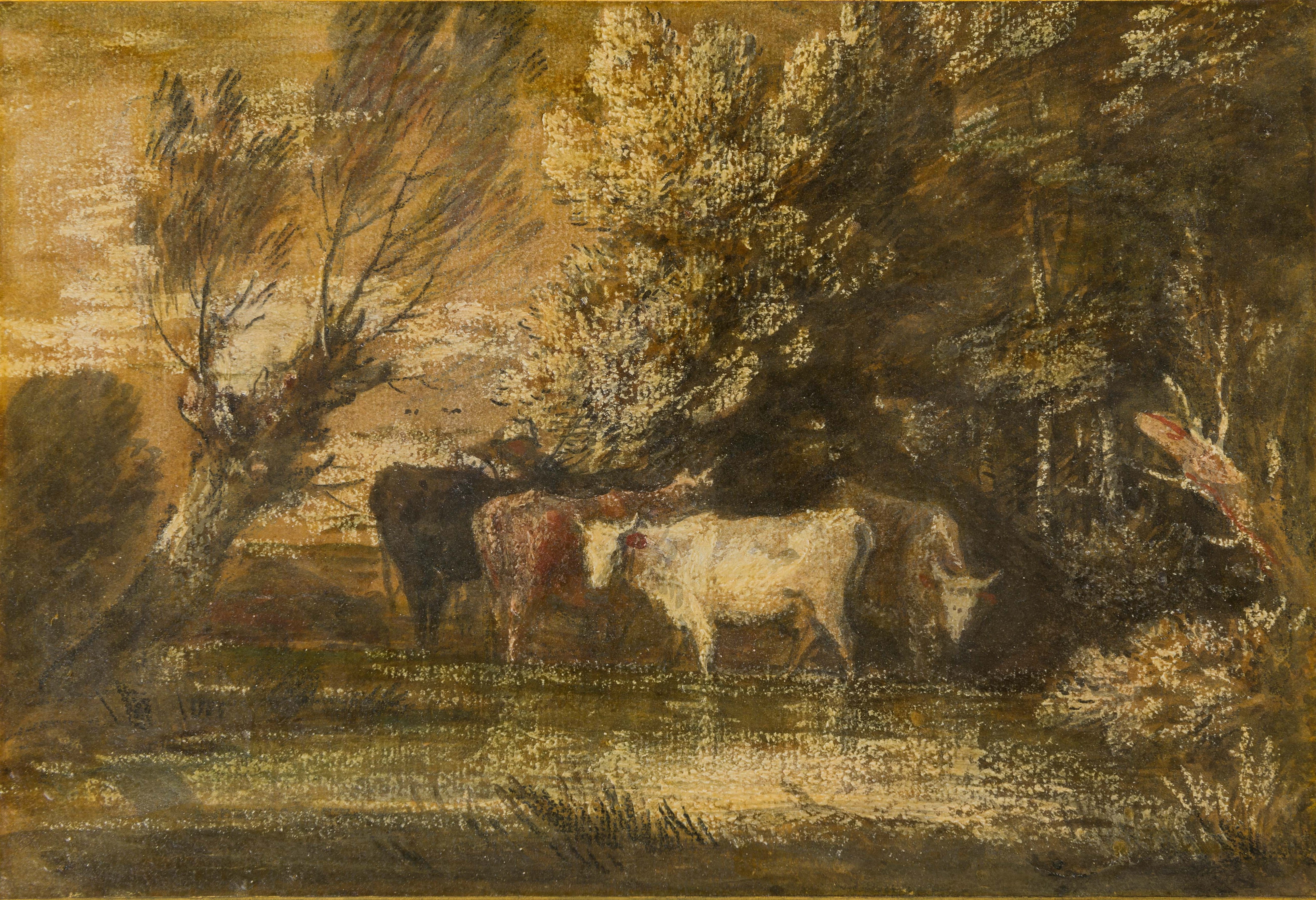 The present sheet may be an early preparatory study, with several significant differences, for Ubaldo Gandolfi’s monumental altarpiece of The Finding of the True Cross, painted in 1775 for the Cathedral of Sant’Eusebio in Vercelli. The painting, which is signed and dated 1775 and has an arched top like this drawing, is believed to have been commissioned for the Duomo by Monsignor Giuseppe Maria Langosco di Stroppiana, Vicar General of Vercelli, who nine years later ordered a Martyrdom of Saint Eusebius by Gaetano Gandolfi for the same church. (The commission for the altarpiece of The Finding of the True Cross has also been credited to Count Eusebio Avogadro della Motta, a member of one of the leading families of Vercelli, for his family chapel in the Cathedral.) An oil sketch bozzetto by Ubaldo Gandolfi for the Vercelli altarpiece is in an Italian private collection, while a very large and finished drawing in red chalk for the composition is also in a private collection and a compositional study in pen and ink is in the Pushkin State Museum of Fine Arts in Moscow. An autograph replica of the present sheet, of similar dimensions, is in the Palazzo Rosso in Genoa.