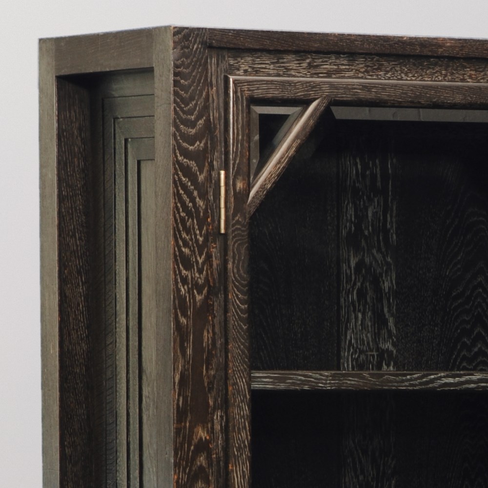 The sideboard is part of a dining-room suite executed by the bent wood company Jakob & Josef Kohn and designed by Josef Hoffmann; it was presented in 1906 at the Imperial Royal Exhibition in Earls Court in London. It is based on a new technique, which allowed Kohn to bend beechwood rods with square cross section. Kohn had already exhibited furniture using this fabrication method in 1900 at the Paris World Fair. It corresponds far more to the new aesthetic idiom of Hoffmann and Moser based on basic geometric shapes than the traditional method of bending round rods. Hoffmann was still applying the latter method in 1904 in a chair for the dining room of the Purkersdorf Sanatorium. Around the same time, Hoffmann must have worked on a new system design, on which it was possible to base complete interior designs. To this we owe the creation of the sideboard. It was announced in an advertisement placed by the Kohn Company in the Hohe Warte in 1905/6. It shows a photo of the aforementioned dining room, on which we can see a part of the sideboard at the right next to the door. The model was not put into production, however, and thus does not appear in the company catalogue, which explains its extraordinary rarity.